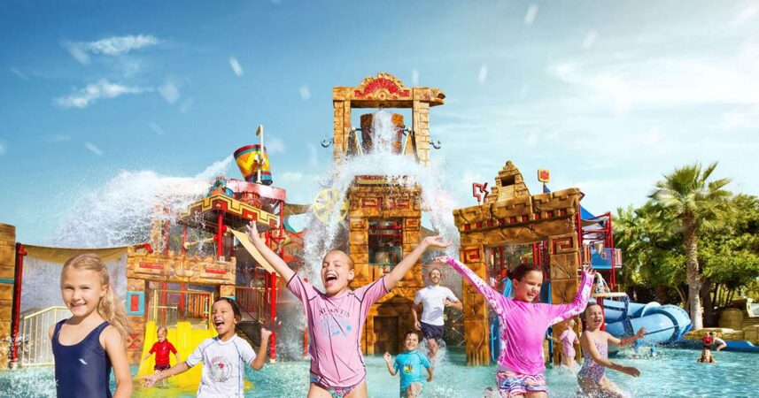 - Features: 2.3 km lazy river with rapids, private beach, and splash pads for children.